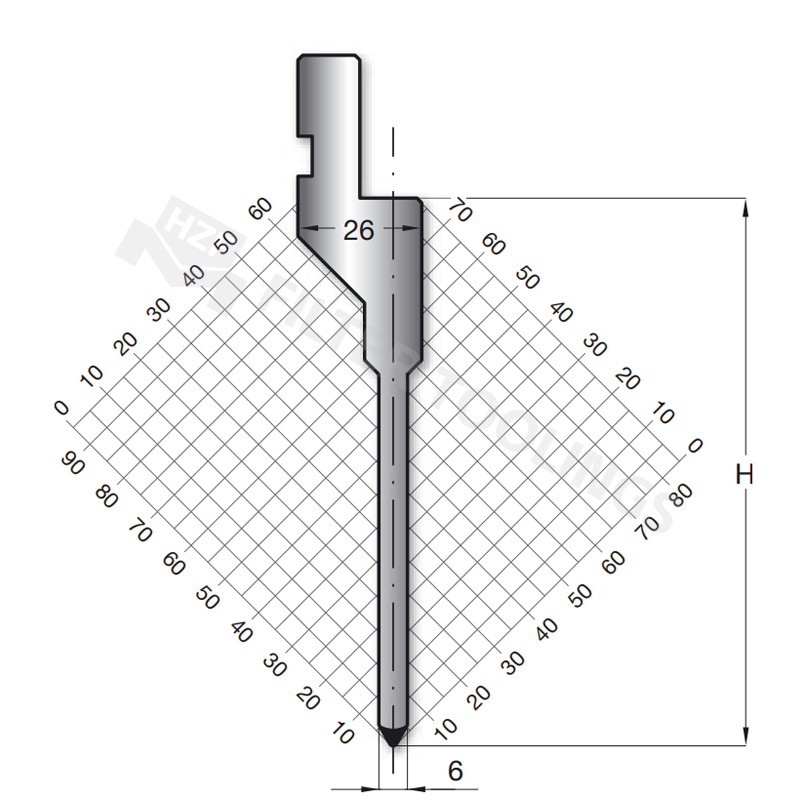 90° Acute Punch tip: Exact 90° angle with ±0.01mm tolerance, guaranteed to produce non-rounded corners.
