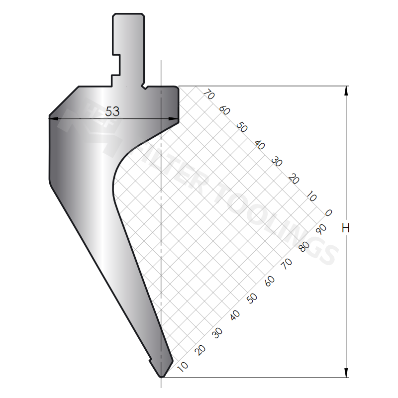 The Press Brake Gooseneck Punch (also called gooseneck upper tool) is a specialized component for press brake systems, designed to handle complex sheet metal forming tasks—especially those requiring access to tight spaces (e.g., bending near raised features on workpieces). Developed by Fierte, a leader in bending tools and sheet metal processing equipment, this punch combines premium materials, advanced heat treatment, and ergonomic design to solve challenging bending problems. Made from 42CrMo4, 42CrMo, or C45 steel, the Gooseneck Punch undergoes whole body heat treatment (HRC48-50) and precision grinding, ensuring it delivers reliable performance in high-pressure environments.